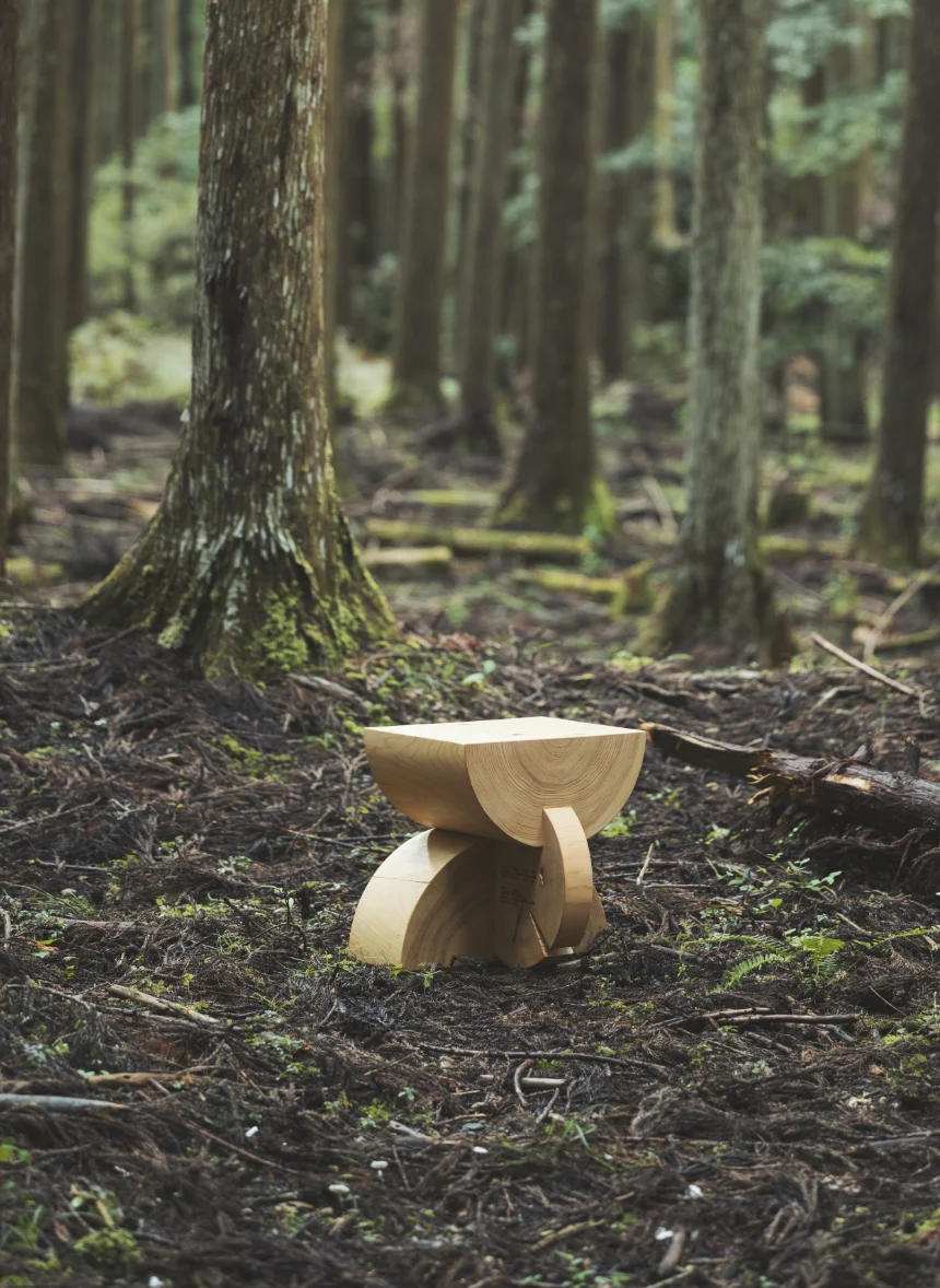 We’ve created many things over the years. Wood products reach us only after trees are felled in the forest, sawn and processed, and moved through the supply chain. While involving many processes and people has made it possible to produce large quantities efficiently and deliver them widely, I have felt that the true charm of the materials, the faces of the people who made them, and the process itself have become harder to see. By stepping into Ishiro Forest, talking with Mr.Tajitsu, and experiencing the forest firsthand, we were struck by many fresh realizations. From that experience, we chose not just to shape objects, but to create public furniture—items many people can encounter—so we can share the ecosystem and its current challenges, and help people feel the forest’s beauty born of life’s rhythms and the passage of time. The stools and benches we made embrace insect traces and knots, and focus on designs that let you feel the presence of the log itself. Adopting the typically hard-to-use root butt as cross-cut stock was another idea that came from going into the forest and getting to know it. We’ve produced many wooden objects, but these convey the wood’s vitality—and the flow of time—more than any before. How much impact will things created in dialogue with the forest have from here on? If they can truly serve people, nothing would make us happier.